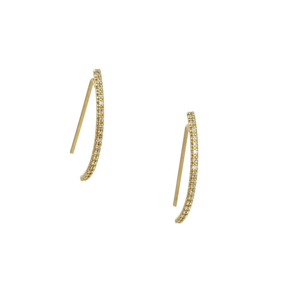 These large diamond arc earrings are perfect to dress up any outfit. The simple arc form allows a constant glisten of diamonds amongst the 14k gold.