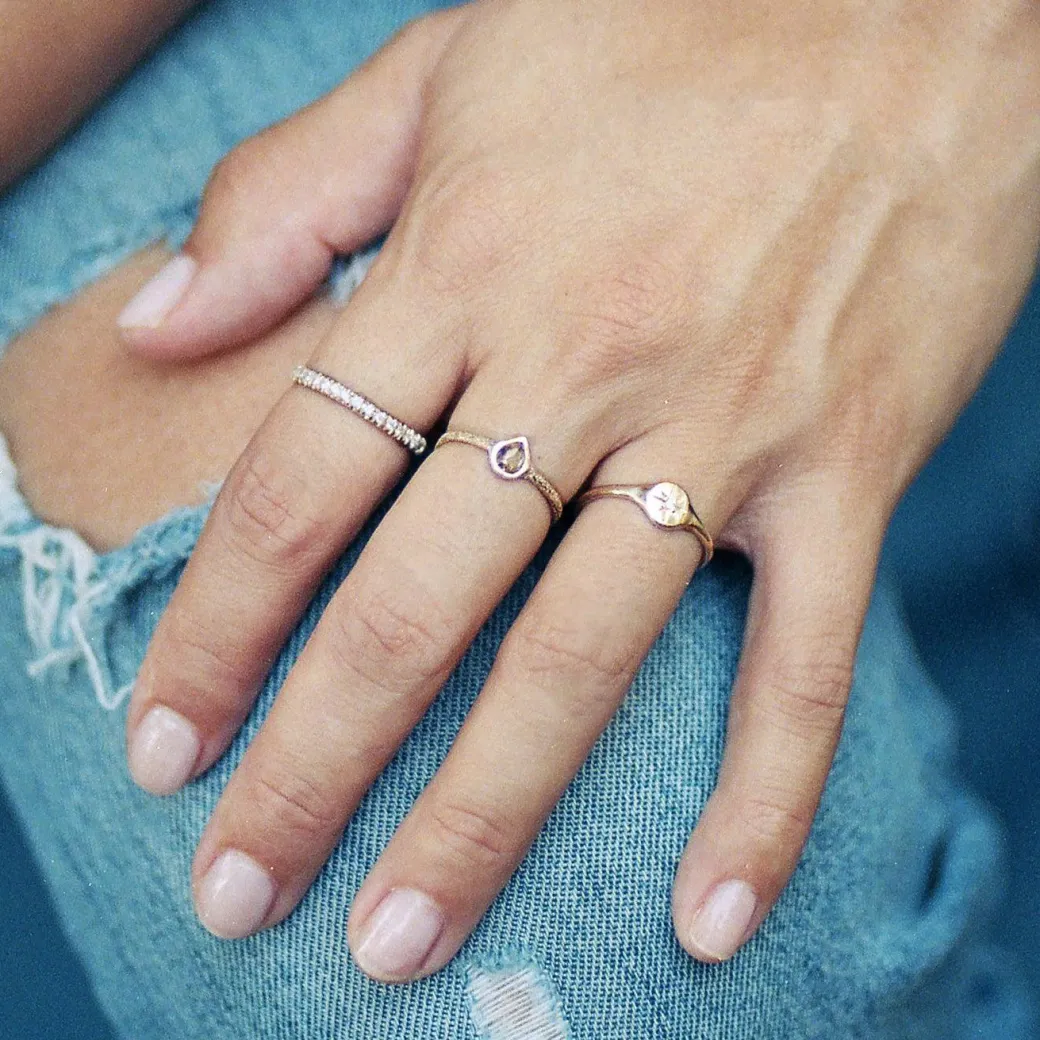 This petite signet style ring is perfect for everyday wear, the perfect size for a pinky or ring finger. The addition of a star set bright white diamond lends a touch of sparkle to this classic design.