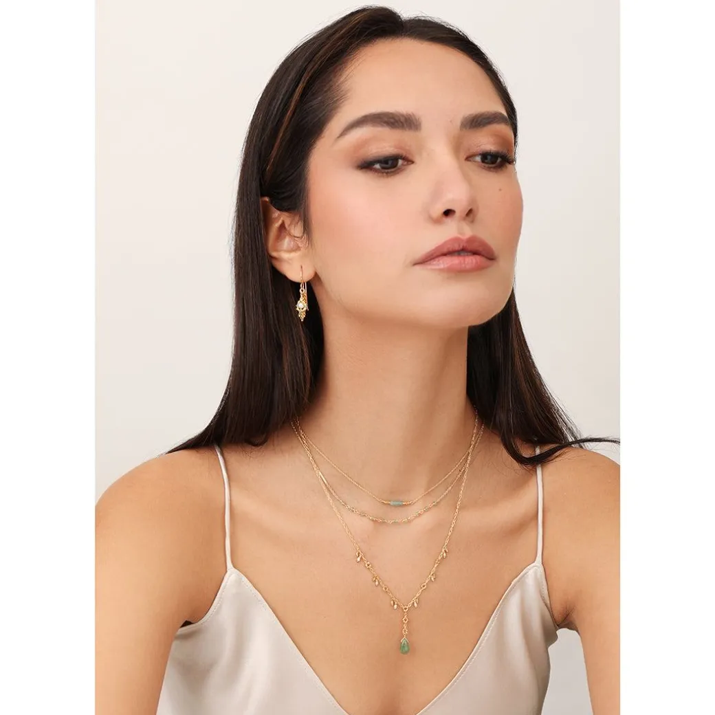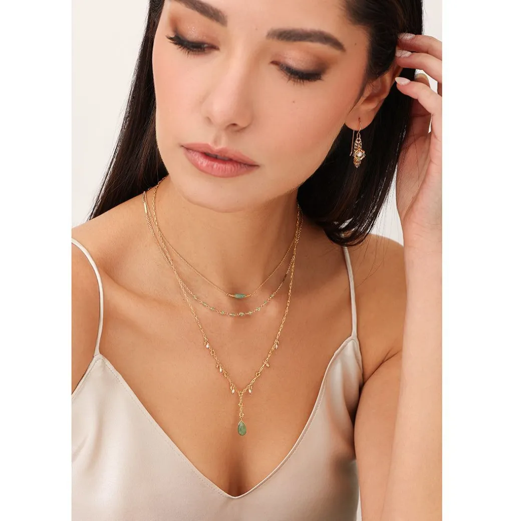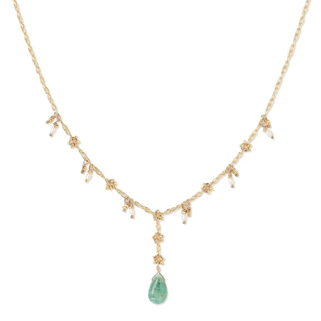 This delicate and feminine drop necklace is embellished with white sapphires and a beautiful natural emerald drop. Handcrafted and created in Austin, Texas.