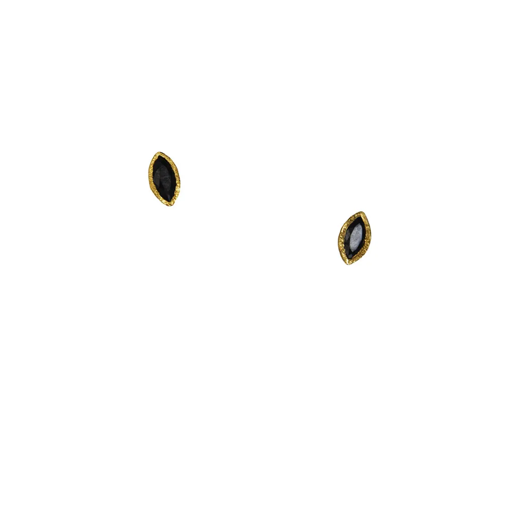 Small in scale, rich in texture — the Tiny Eye Studs are hand-carved in solid 14k yellow gold with black diamonds set in a softly textured bezel. Subtle yet striking, they’re designed to catch light with every turn. Perfect for layering or everyday wear.
