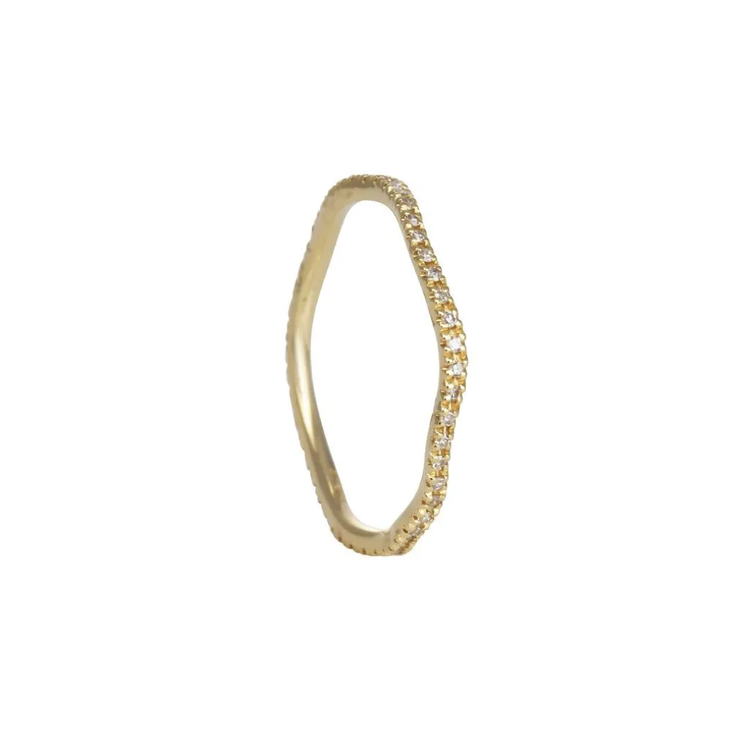 A fun addition to the stackable eternity band range: this 14k white gold pave diamond ring weaves up and down like the waves, it is an ideal anniversary band, or use it to make your own statement. Perfect for stacking or wearing alone.
