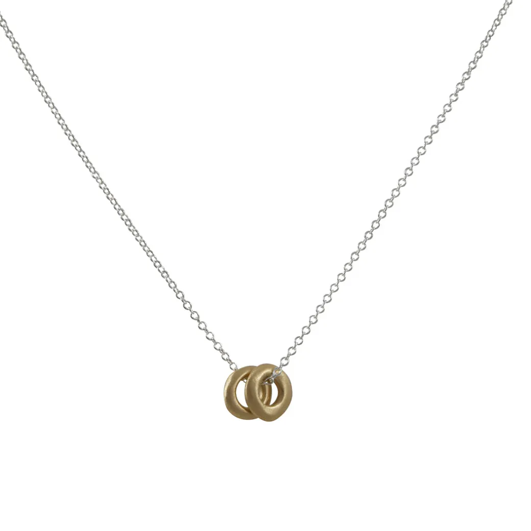 An instant classic, this necklace features two organically shaped, solid circular pendants that move freely on the chain. Handcrafted in Philippa’s studio in Oakland, CA.