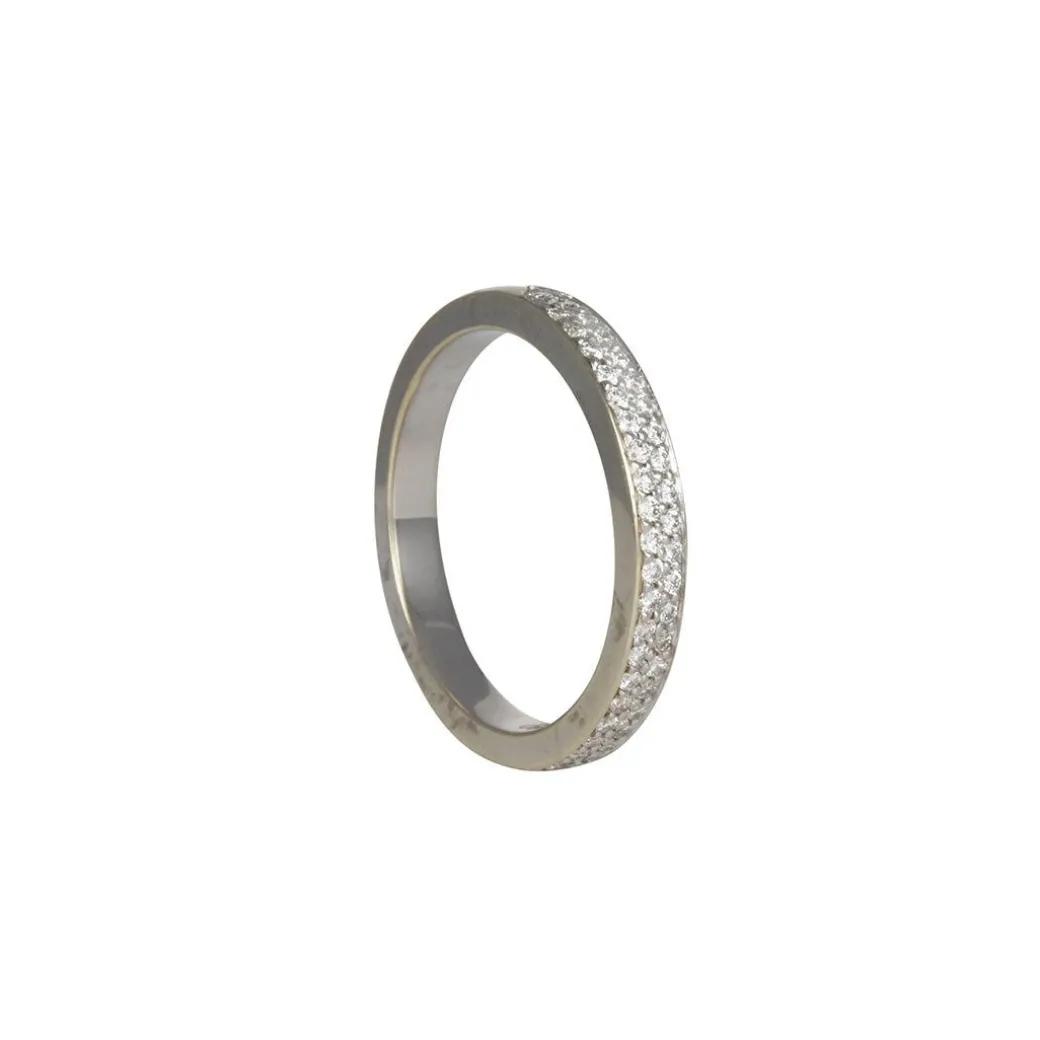 This band features pave diamonds wrapped halfway around to form this stunning piece to mark your milestone.