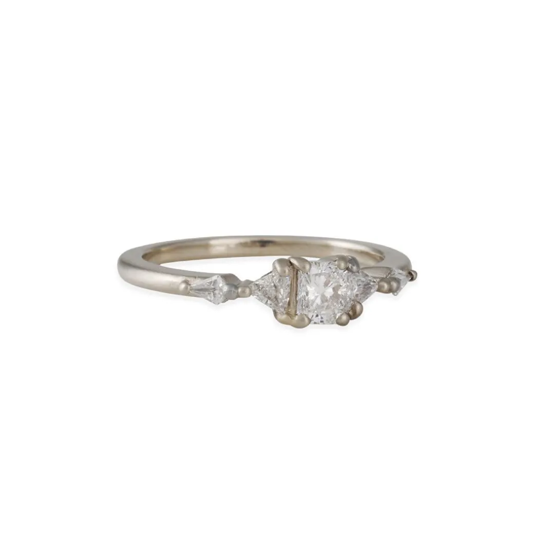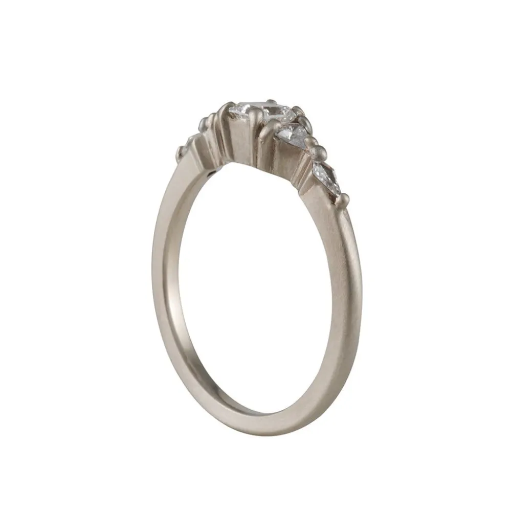 This sculptural, totem ring from Rebecca Overmann features mixed brilliant cut diamonds set on a fine squared band. Handmade in San Francisco by Rebecca Overmann.