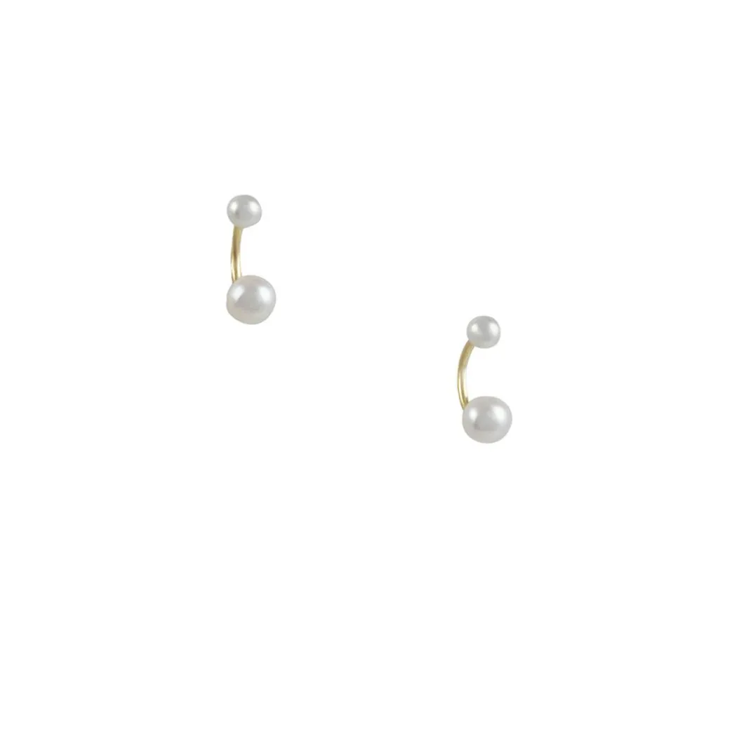 These unusual pearl studs feature two pearls set on a curved shank. A Satomi Kawakita classic.