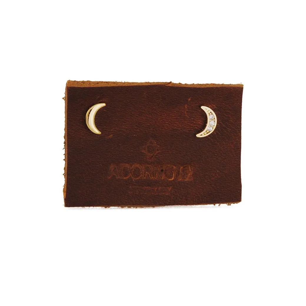These tiny textured gold plated moon studs are perfect to wear every day or in a second ear piercing. Sparkly CZs give it that little bit of extra something!