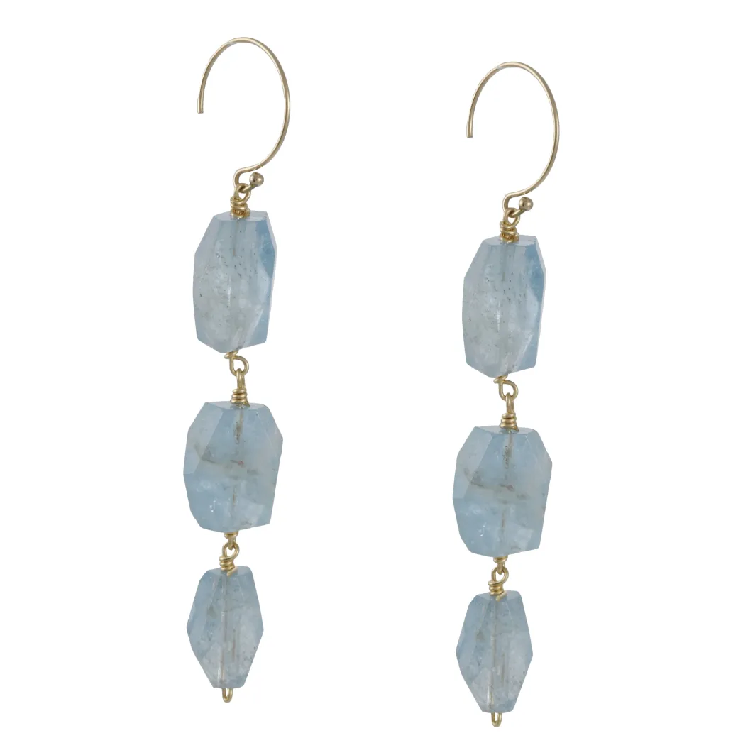 Delicately handcrafted in Brooklyn, these elegant dangle earrings showcase the artistry of former Clay Pot gemologist Danielle Mayes. goldfill wiring intricately weaves around luminous aquamarine, enhancing the natural beauty of each gemstone. The lightweight design offers effortless movement, making them a stunning addition to any jewelry collection.