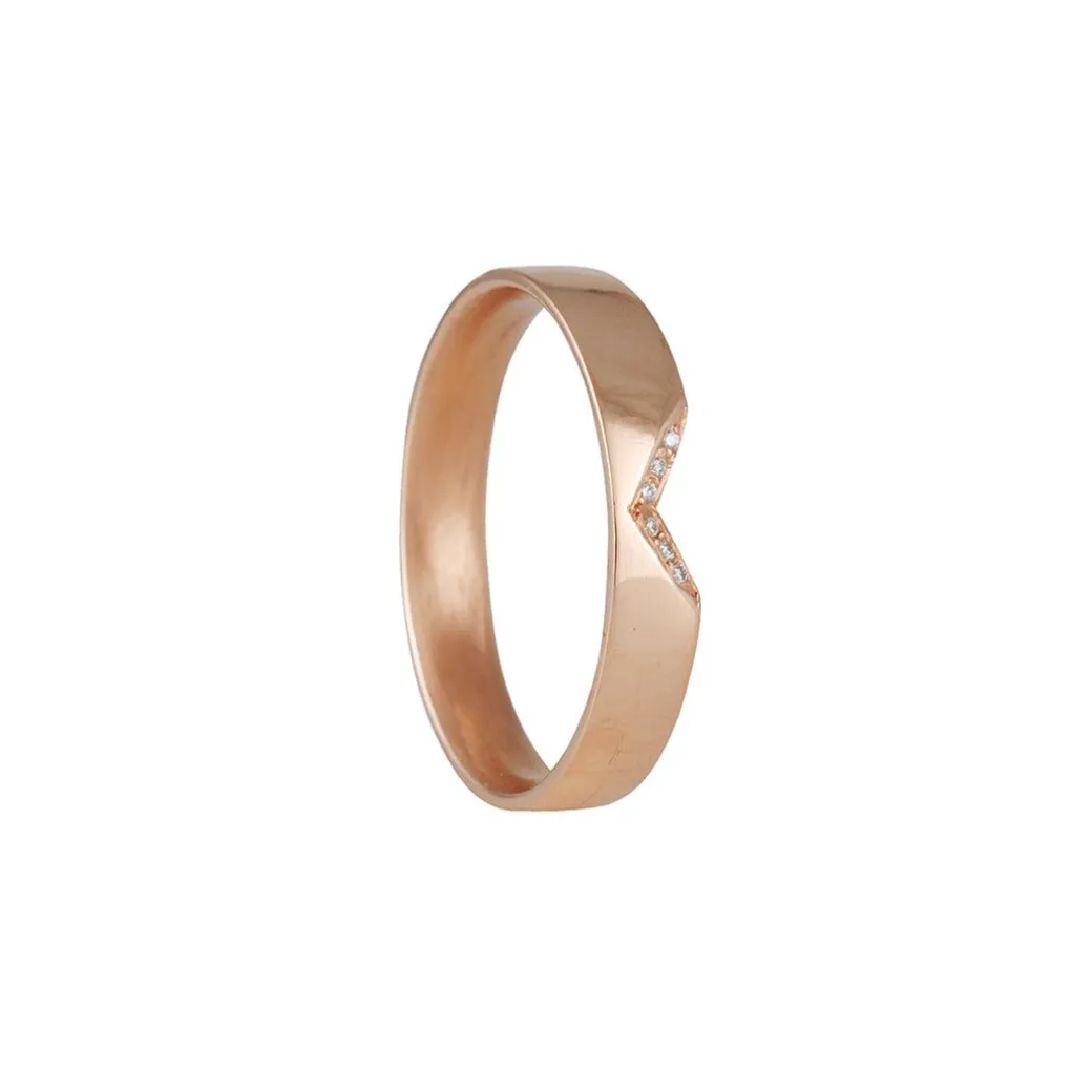 This thoroughly modern flat band has a beveled cut-away pavéd with 6 tiny diamonds. Designed to add structure and interest to a stack or provide a nice compliment to a larger stone setting, this unique hand-crafted piece is sure to draw compliments.