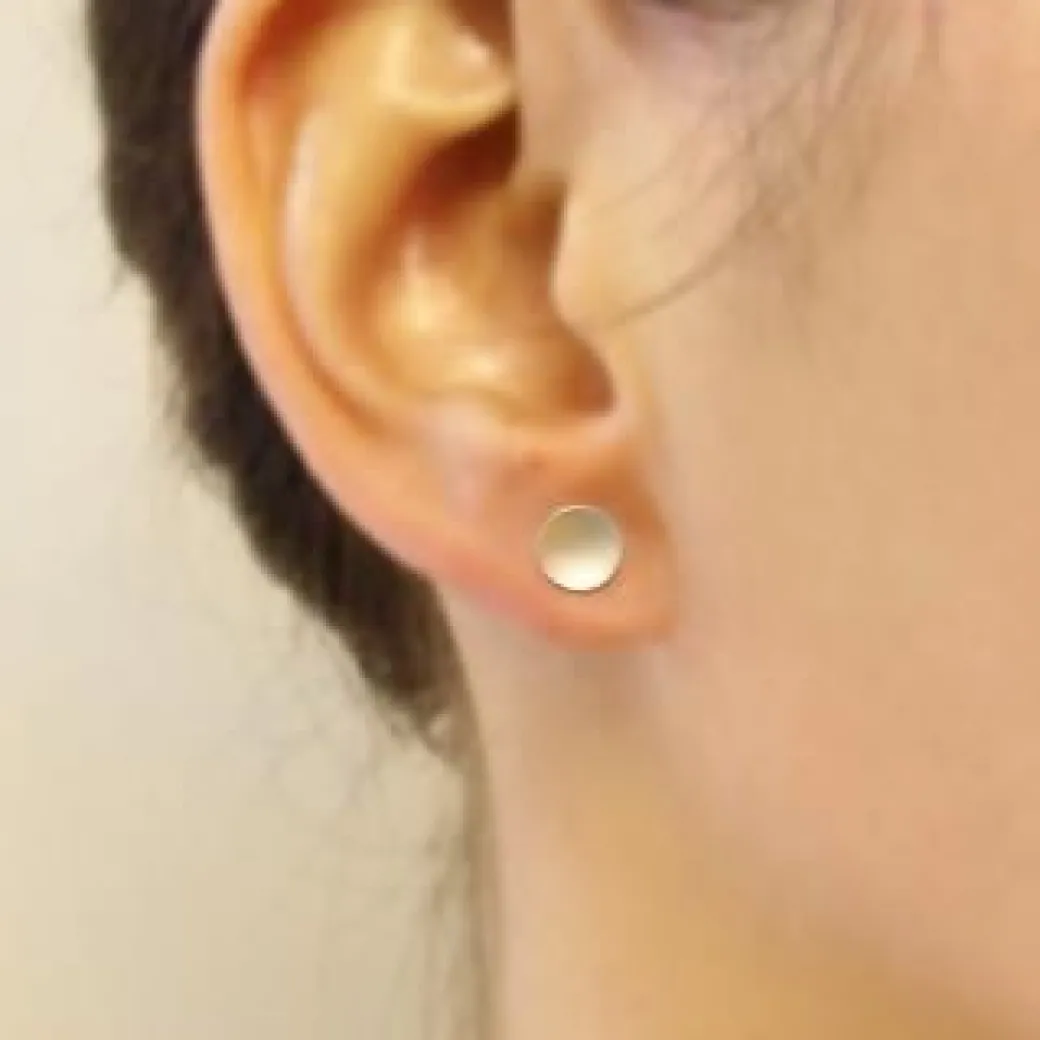 Playfully understated, these medium polkadot stud earrings look great with everything. Handmade in 14k yellow gold or sterling silver with a satin finish, the concave dots are just under 1/4″ in diameter.