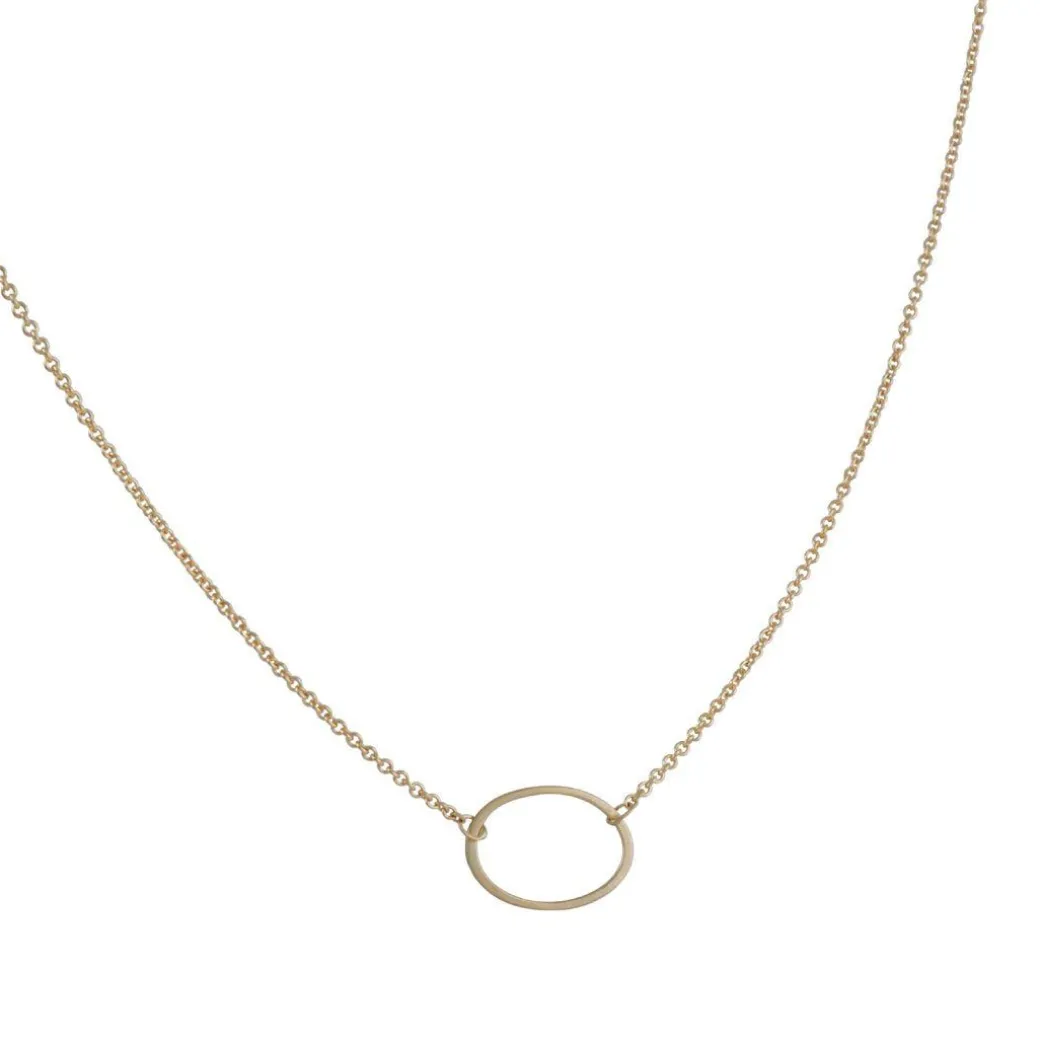 Our best selling necklace of all time, the queen of simplicity is understated yet packs a graphic punch. The mini oval is suspended by tiny gold jump rings with Carla’s signature 14k cable chain. Handmade in Carla’s Western Mass Studio.