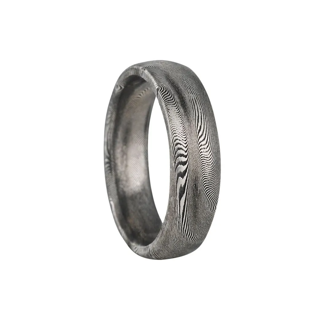 This handsome wedding band features the unique “Starlight” pattern of Damascus Steel. This style can be ordered in different widths and in your size. The steel was forged by hand and finished in Chris Ploof’s Western, Massachusetts workshop.