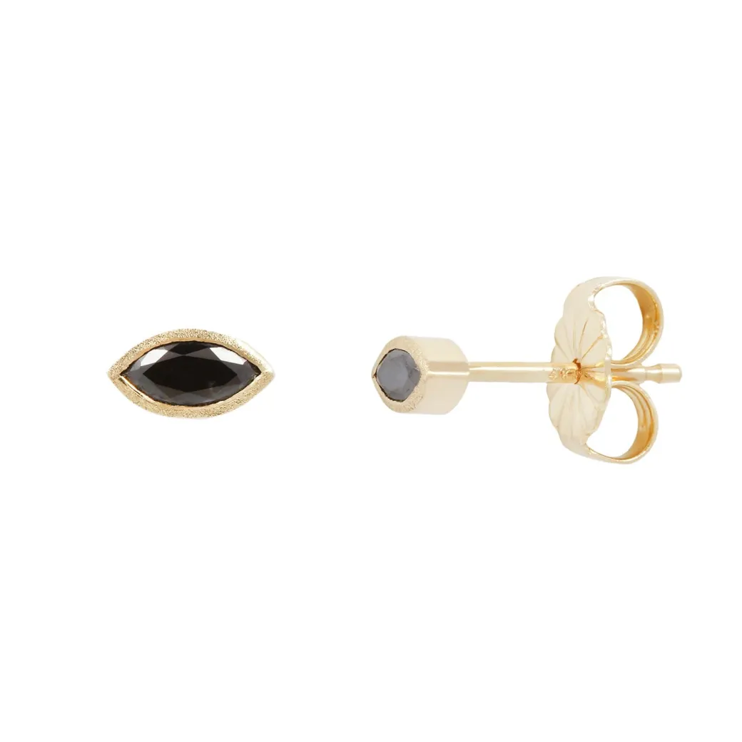 Small in scale, rich in texture — the Tiny Eye Studs are hand-carved in solid 14k yellow gold with black diamonds set in a softly textured bezel. Subtle yet striking, they’re designed to catch light with every turn. Perfect for layering or everyday wear.