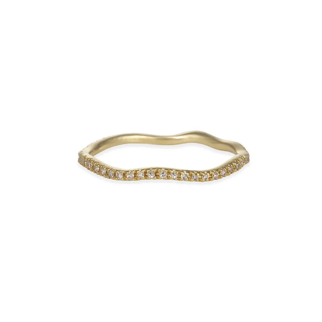 A fun addition to the stackable eternity band range: this 14k white gold pave diamond ring weaves up and down like the waves, it is an ideal anniversary band, or use it to make your own statement. Perfect for stacking or wearing alone.