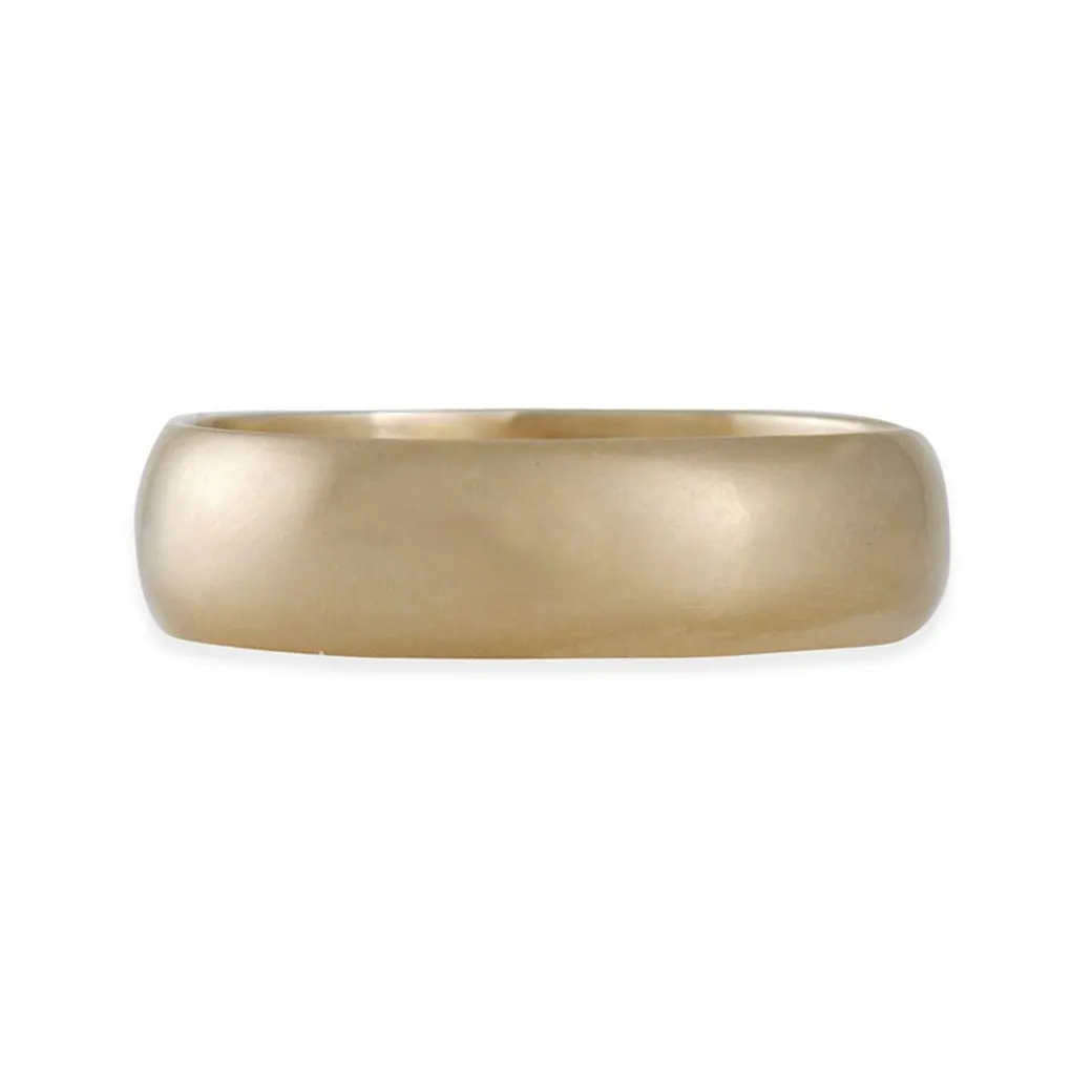 This handsome wedding band features a rounded shape with softened edges for a comfortable fit. Handcrafted in Brooklyn, NY.
