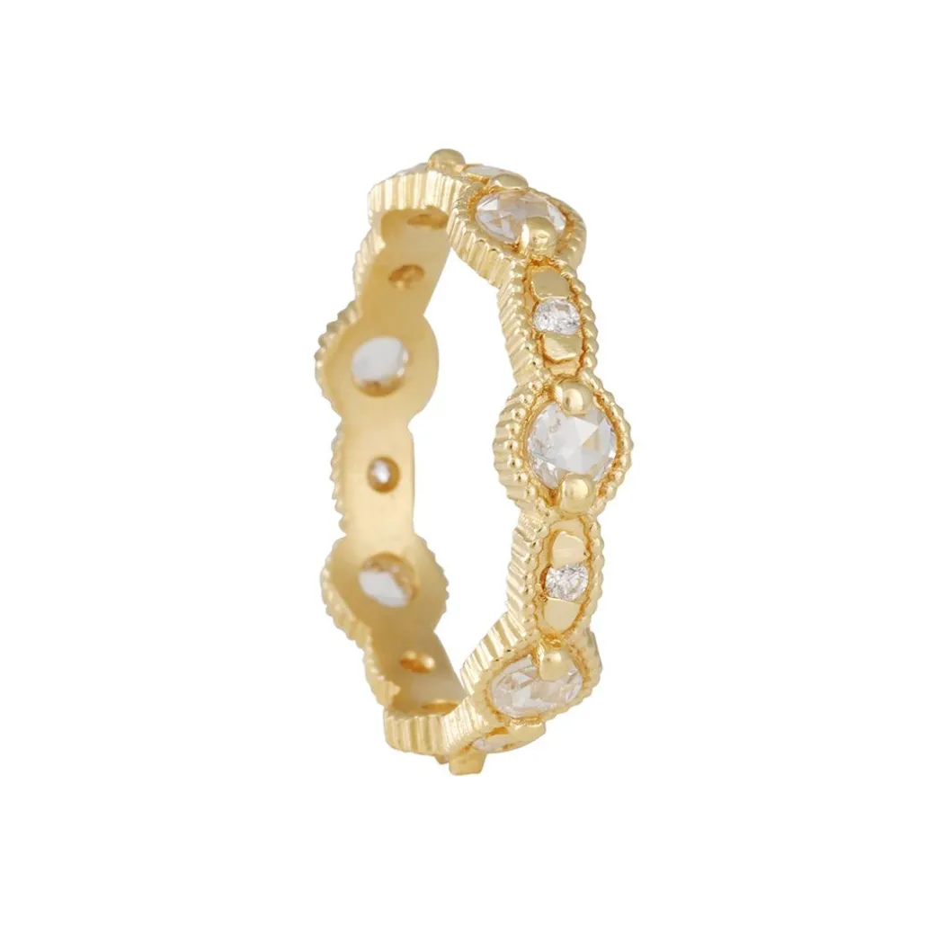 This heirloom quality eternity band features rose cut diamonds, alternating with sparkly flush sets. Handcrafted in Fort Worth, TX by Megan Thorne.