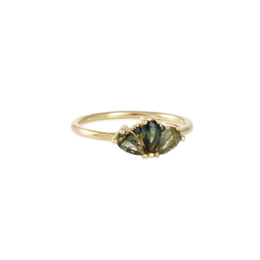 This one of a kind ring, features bi-colored tourmaline and black diamonds creating a image of a bird in flight. Perfect to wear alone or with others.