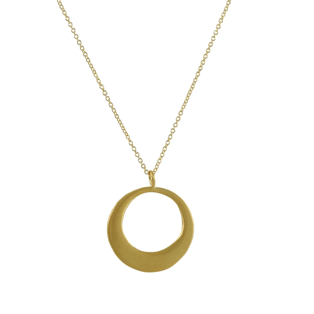 This necklace features one large open organically shaped pendant on a snake chain. Handcrafted in Philippa’s studio in Oakland, CA