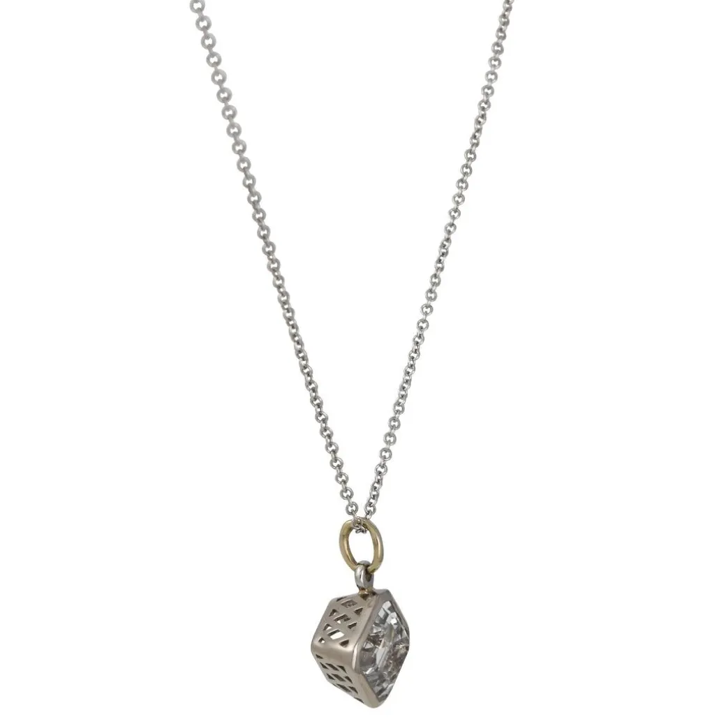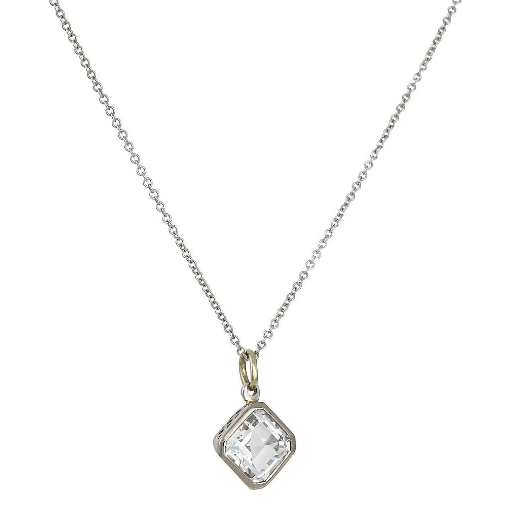 This emerald cut topaz pendant hangs on a 18k white gold chain for both sophisticated elegance and charm.