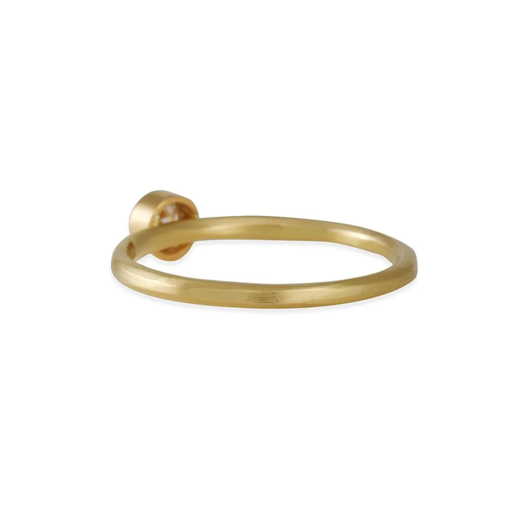 This stunning engagement ring features a white diamond bezel set in a setting that has tiny diamond pave up the shank. Can be ordered with a different center stone, including sapphire.
