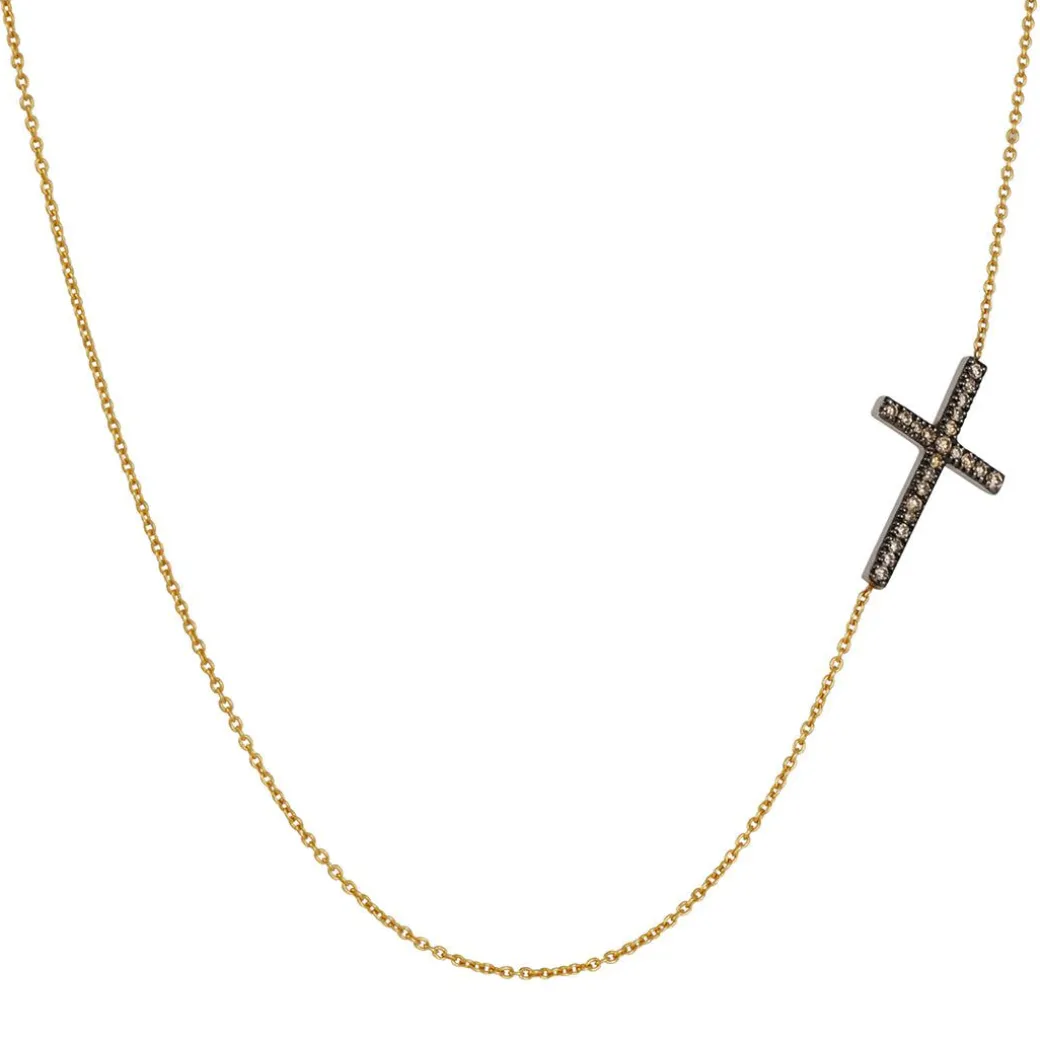 This pave diamond cross is stationed on a gold chain. Great for layering.