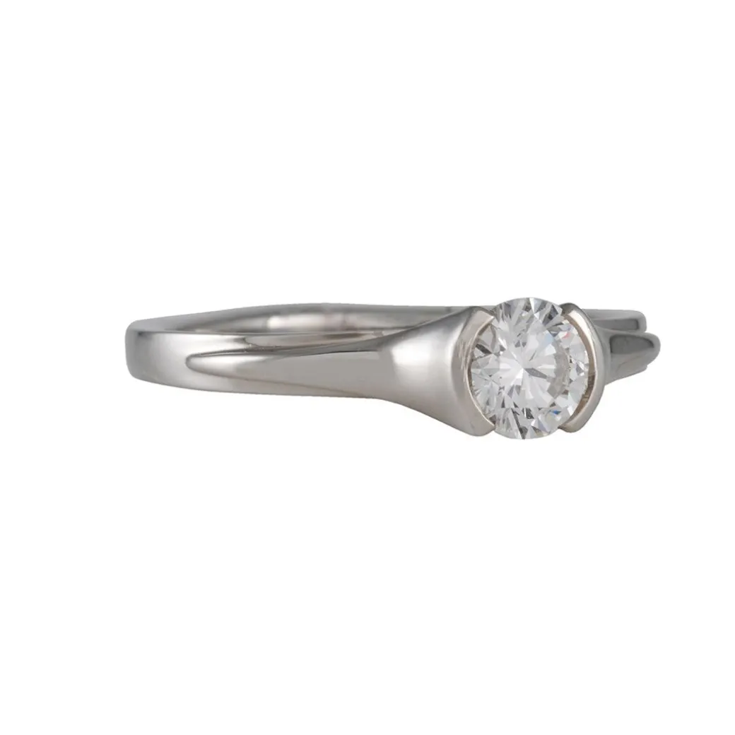 This sleek and sculptural diamond ring features subtle and fluid detailing on its sides.