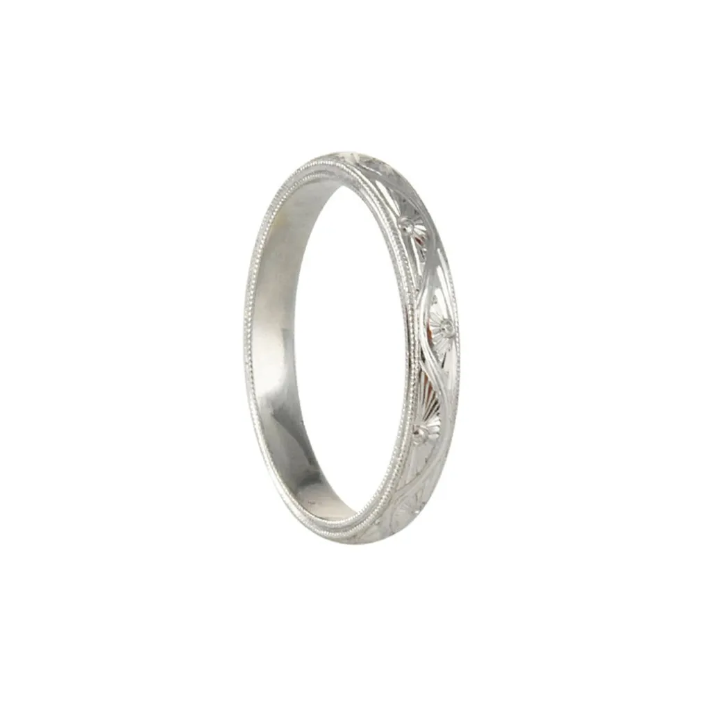This beautiful band with it’s undulating engraving feels opulent, but simple enough to wear everyday.